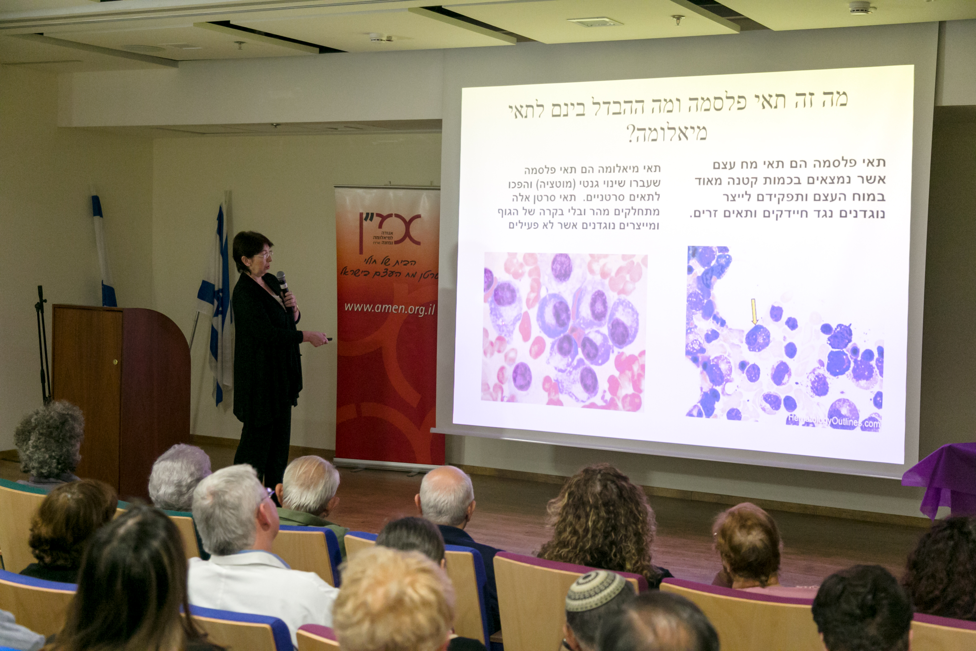 ההרצאה הראשונה עסקה בהצגת המחלה – מהי מיאלומה. מבנה ההרצאה כלל ‘דו שיח’ בין ד”ר אולגה שבץ, רופאה בכירה במכון ההמטולוגי, ומטופל. לעיון במצגת ההרצאה, לחצו כאן. לצפייה בהרצאה בווידאו, לחצו כאן.